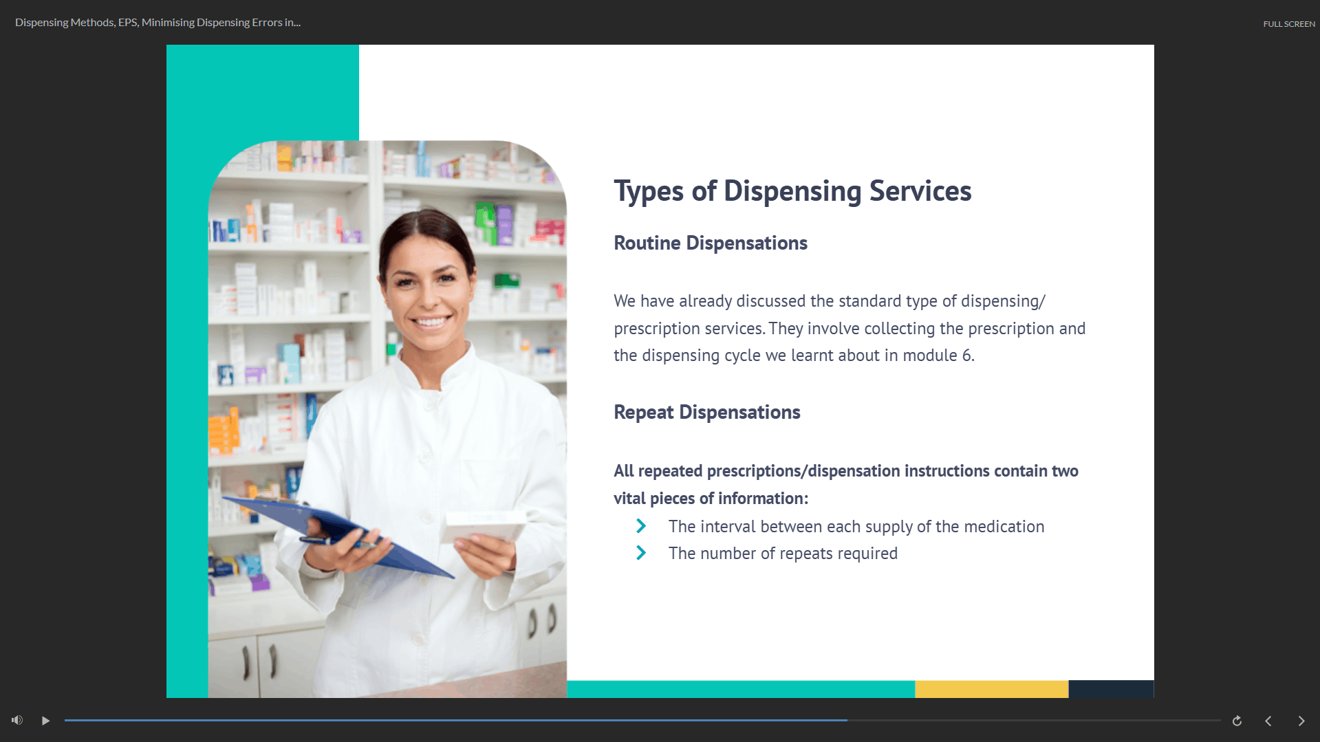 | Module 7: Dispensing Methods, EPS, Minimising Dispensing Errors in Pharmacies | 00:18:00 | ||